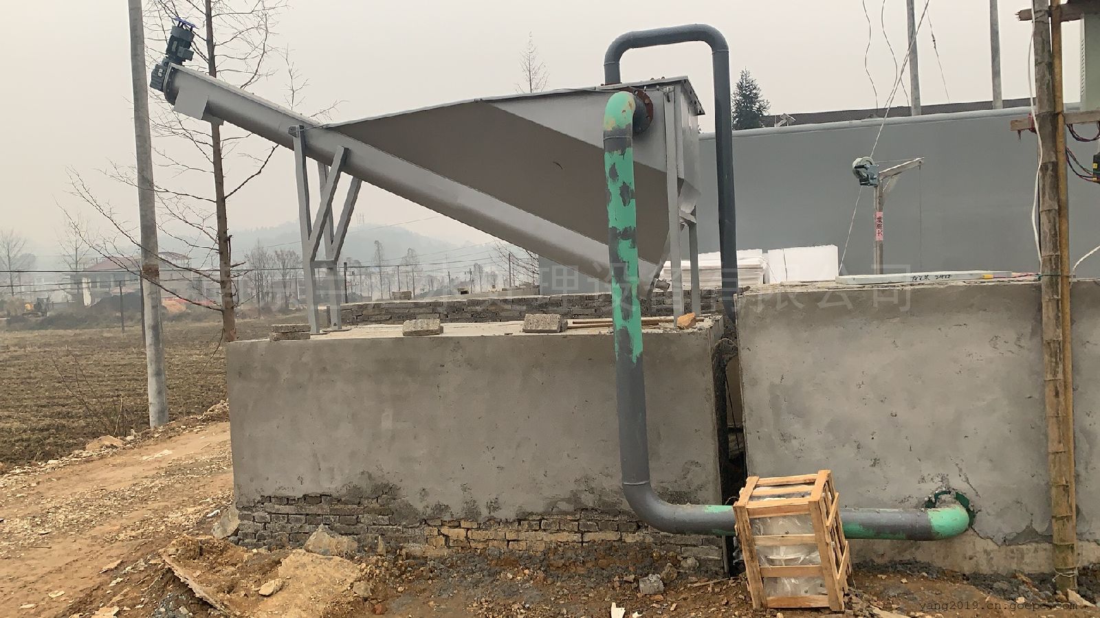 砂水混合物从分离器输入水箱,混合物中的沙砾等沉积于槽型底部,在无轴螺旋的输送下,沙砾从U型槽底部提升,一直推送,在沙砾充分脱水后排至盛砂桶。分离后的水输送至进水池。
