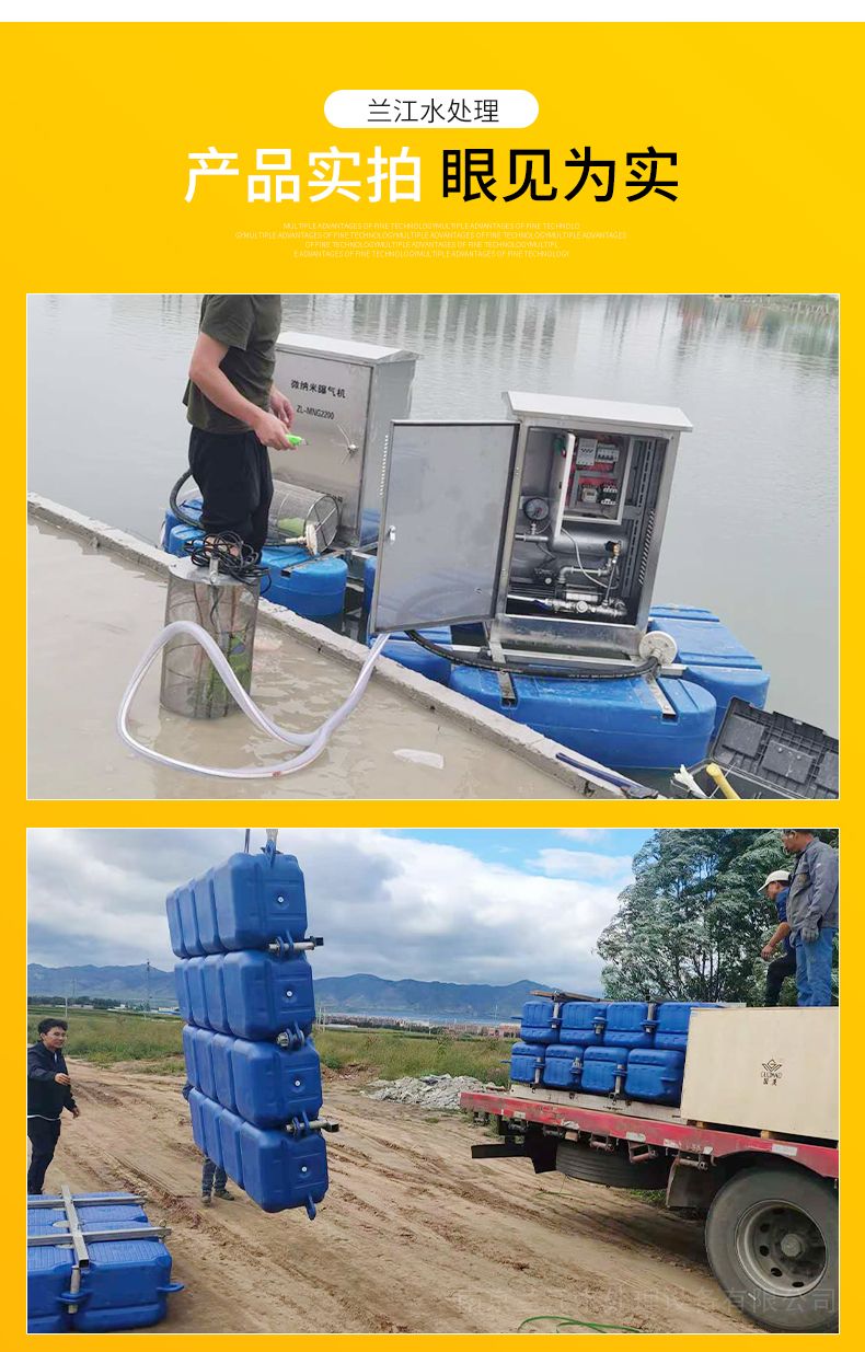 微纳米气泡机由纳米气泡泵、溶气系统、释放系统等组成。微纳米气泡机通过纳米气泡泵将气体和水混合后输入到溶气罐,使气体溶解在水中,继而通过 释气装置将溶解气体释放出来形成纳米气泡,并以高速射流到水中,射流对水产生机械电离作用,在打破污染团胶体连接、断裂污染物与水的化学键和电性吸附结合的同时,射入的活性氧、氧离子、电离产生的氢离子和氢氧根离子等氧化分解污染物,实现水质的净化。 微纳米气泡在水中的溶解率超过 85%,溶解氧浓度可以达到饱和浓度以上,并且微纳米气泡 是以气泡的方式长时间存留在水中,可以随着溶解氧的消耗不断地向水中补充活性氧,为净 化处理污水的微生物提供了充足的活性氧、强氧化性离子团,并保证了活性氧充足的反应时 间。经过 纳米气泡机处理后还原的洁净水,水中的溶解氧含量标准为 4ppm,水自身的净化能力远远高于自然条件下的自净能力。