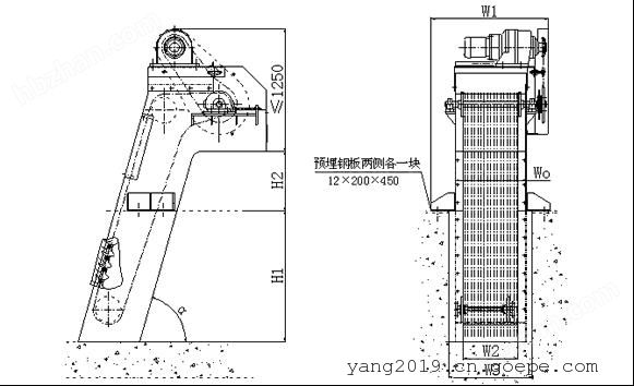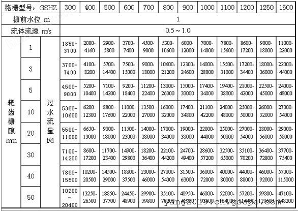 按设备宽W0该机分GSHZ300-1500型,并联机GSHZ1600-3000型。选型由过水量、提升高度 而定,同时根据所分离杂物的大小选配不同格栅。